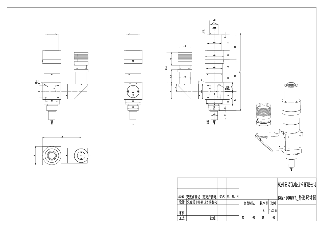 - 1X(筒镜焦距180mm),可定制不同倍率缩倍镜