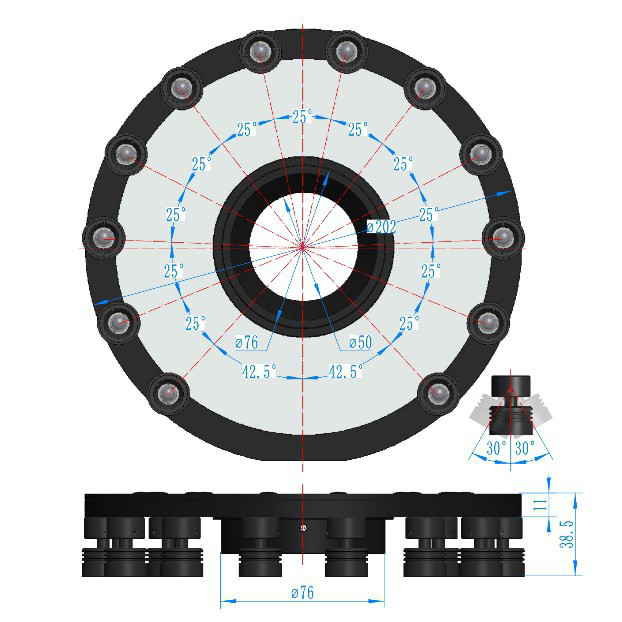 - 灵活安装与高兼容性:采用 76mm 外径支架及 50mm 中心安装孔,便于与多类显微镜、工业相机及检测支架快速组合,可与其他照明模块搭配